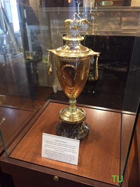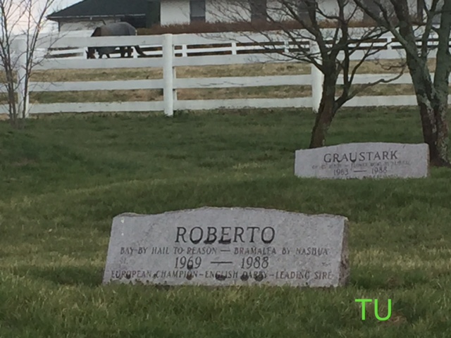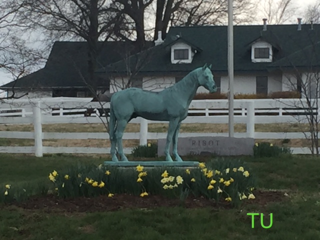 In 1935 Darby Dan Farm was founded in Ohio by John W. Galbreath.  In 1949 he relocated to Lexington, KY on the former Idle Hour Stock Farm property previously owned by horseman, Colonel Bradley.  The grounds are simply beautiful.  So much so that it was the location chosen to film the 2010 Disney movie, Secretariat.  Many antiques and the manor house were left behind by Bradley, including his equine graveyard with a bronze statue of his champion sire, Black Toney, marking his grave.  The graveyard contains a few of Galbreath’s champs too.  I saw the markers for Star De Naskra (champion sprinter),  Roberto (Epsom Derby winner),  Graustark (the undefeated winner of 7 races whom broke-down in the 1966 Blue Grass Stakes) and Ribot  (European champion racer and sire).