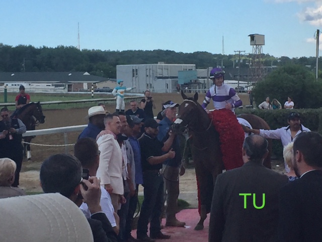 I had front row views of the finish line, paddock and winners circle without excessive crowding. I thoroughly enjoyed watching the presentation in the winner’s circle. Irap is the offspring of Tiznow and Silken Cat. He was bred in Kentucky by Aaron and Marie Jones. Irap is trained by Doug O’Neill, his jockey is Julien Leparoux and he is owned by Reddam Racing, LLC. Several of his connections were on hand to take the winning photo and receive the trophies. Irap looked great draped in a blanket of Ohio’s state flower, red carnations. Leparoux appeared to be beaming. Irap moved up to 6th place among North American 3 year-old Thoroughbreds. He has $1 million dollars in earnings for 2017. He may aim for a race in California next or the Indiana Derby.